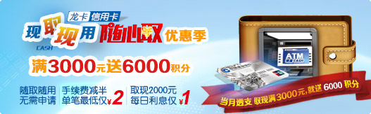 龙卡随心取优惠季 满3000元送6000积分