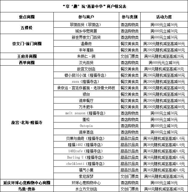 具体参与门店详见下图,如有变更以实际为准。