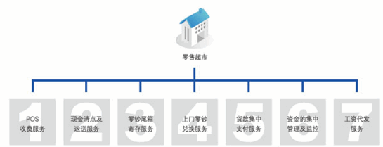 零售超市行业每天会有大量的现金收入,同时又需要大量的零钞; 拥有众多供应商,与供应商的资金结算周期一般为三个月左右,结算时点较为集中;对于管理能力较强的企业,总部一般会集中管理供应商,各分支企业的营业收入在指定时间内归集至总部,由总部集中向供应商支付。因此,对企业资金流提出了更高的要求,需要银行在现金上门收款、零钞配送、尾箱寄存、资金归集、供应商付款等方面提供更加安全、便捷有效的服务。
